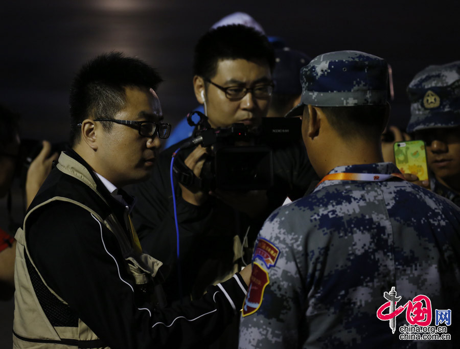 9月3日,中國(guó)人民抗日戰(zhàn)爭(zhēng)暨世界反法西斯戰(zhàn)爭(zhēng)勝利70周年紀(jì)念大會(huì)將在北京隆重舉行。圖為中國(guó)網(wǎng)記者齊凱、王一辰在活動(dòng)現(xiàn)場(chǎng)采訪。中國(guó)網(wǎng)記者 楊佳攝影