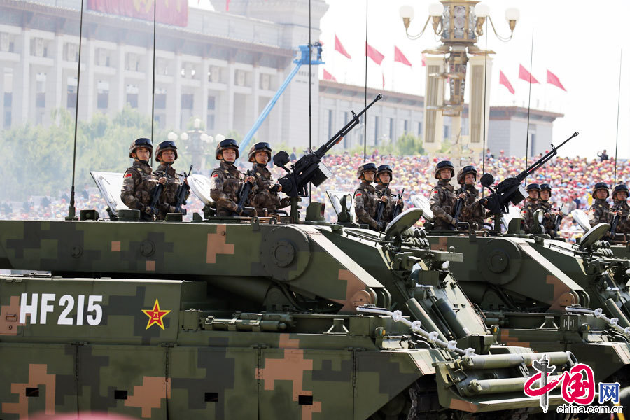 9月3日,中國人民抗日戰爭暨世界反法西斯戰爭勝利70周年紀念大會在北京隆重舉行。裝備保障方隊通過天安門廣場接受檢閱。中國網楊佳攝影