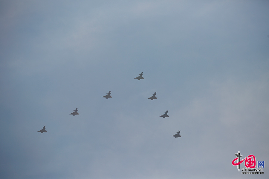 9月3日,中國人民抗日戰(zhàn)爭暨世界反法西斯戰(zhàn)爭勝利70周年紀(jì)念大會在北京隆重舉行。圖為殲擊機第二梯隊接受檢閱。中國網(wǎng)記者 楊佳 攝