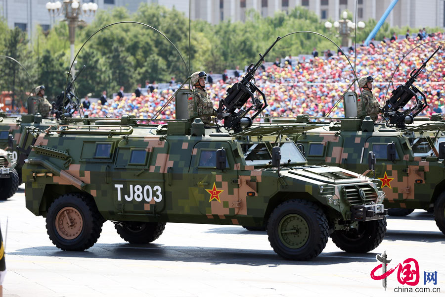 9月3日,中國人民抗日戰爭暨世界反法西斯戰爭勝利70周年紀念大會在北京隆重舉行。輕型突擊車方隊接受檢閱。