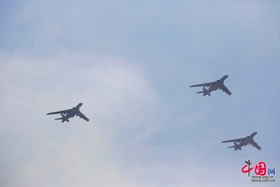 9月3日,中國人民抗日戰爭暨世界反法西斯戰爭勝利70周年紀念大會在北京隆重舉行。圖為轟炸機梯隊接受檢閱。中國網記者 楊佳 攝