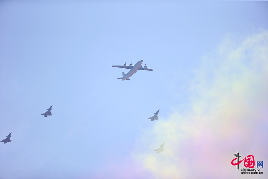 9月3日,中國人民抗日戰爭暨世界反法西斯戰爭勝利70周年紀念大會在北京隆重舉行。圖為預警指揮機梯隊接受檢閱。中國網記者 鄭亮 攝